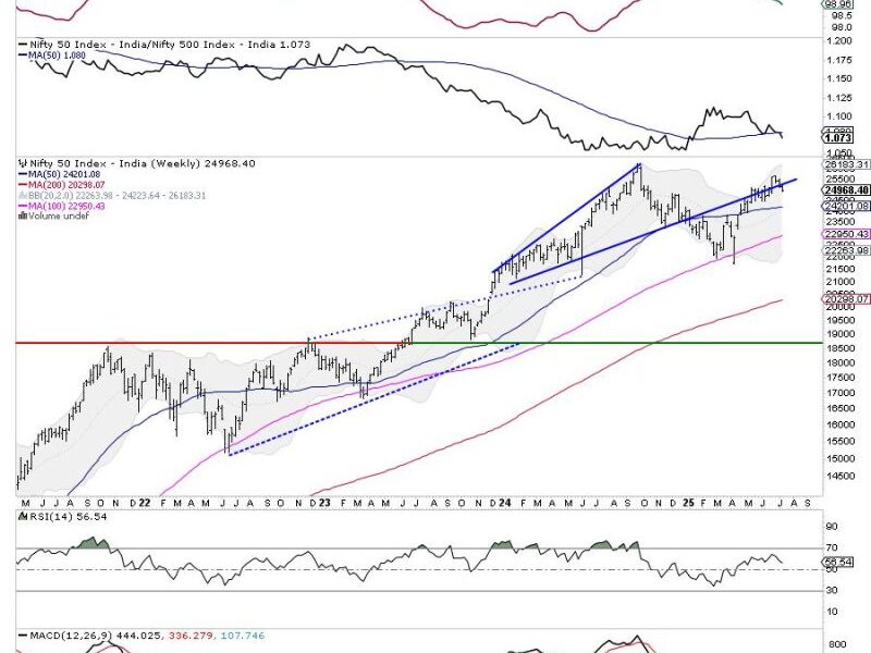 Given the current technical structure, it would be prudent for traders to remain selective and protect profits at higher levels. The markets are not displaying signs of aggressive strength, and unless there is a convincing move above 25350, a stock-specific approach with tight risk management is advised. Traders may avoid aggressive fresh buying until a directional move is clearly established. Cautious optimism, with a focus on stocks exhibiting stronger relative strength, is the ideal approach for the coming week.